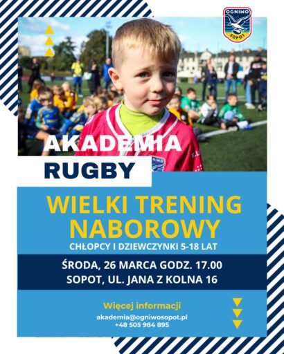 Szukamy młodych wojowników w wieku 5-18 lat, a szczególnie z roczników 2014, 2013, 2012! 💪 Jeśli masz ochotę spróbować swoich sił w rugby, to idealna okazja, by dołączyć do naszej akademii!